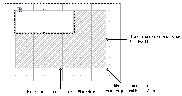 可以使用“属性”窗口手动设置数据区域的“固定高度”和“固定宽度”属性,也可以使用数据区域周围显示的调整大小处理程序来设置 FixedSize。