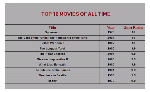 下图是显示前 10 条电影记录的前