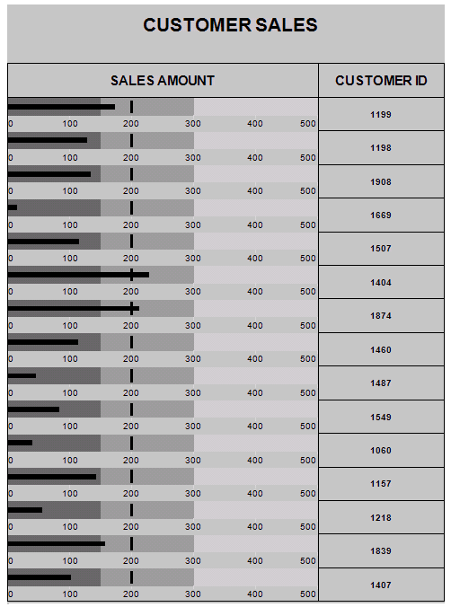 由于项目符号图基于聚合数据,因此您将获得一堆项目符号图,指示不同客户的销售额值。